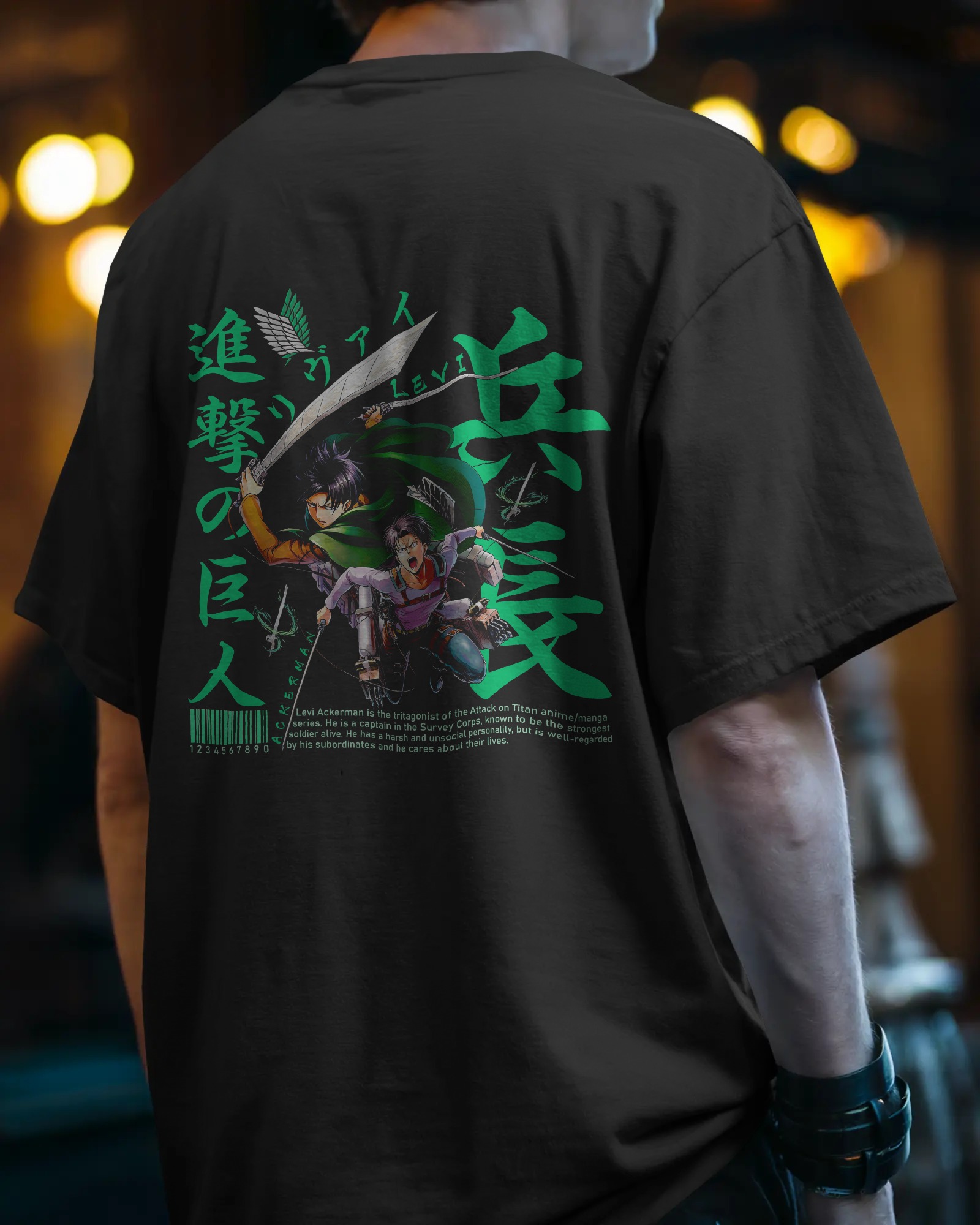 Levi x AoT T-Shirt – Honor the unmatched skill and precision of Captain Levi Ackerman from Attack on Titan. Crafted from 100% soft, breathable cotton in an oversized fit, this anime-inspired tee combines comfort with striking graphics that capture Levi’s stoic strength, agility, and legendary heroism. Perfect for fans who admire courage, strategy, and epic battles.
