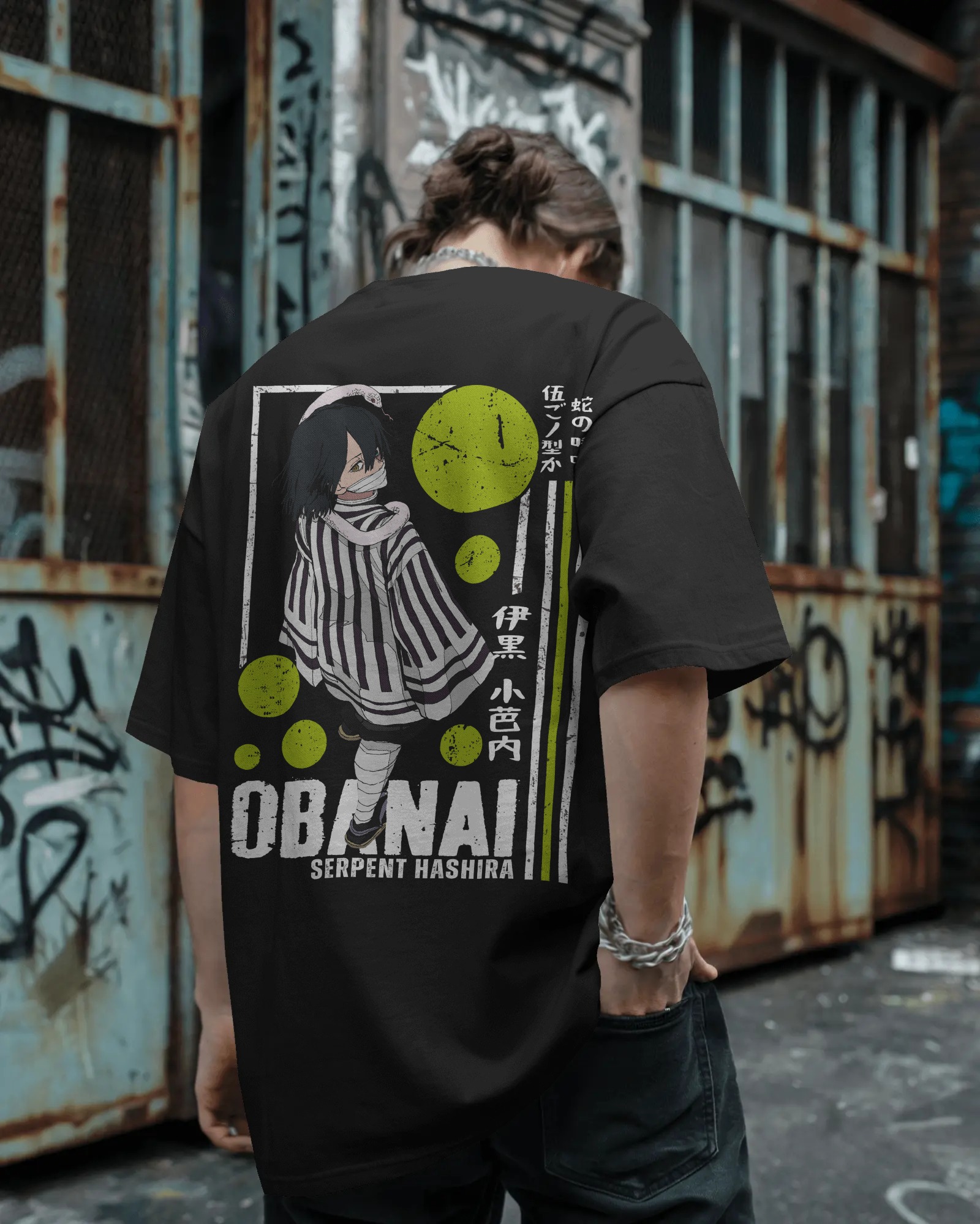 Obanai x Serpent Hashira T-Shirt – Embrace the stealth and precision of Obanai, the Serpent Hashira, with this bold anime-inspired tee. Crafted from 100% soft, breathable cotton in an oversized fit, it combines comfort with striking style. Perfect for fans who love to showcase their favorite Hashira with confidence and flair.